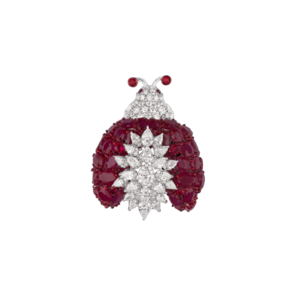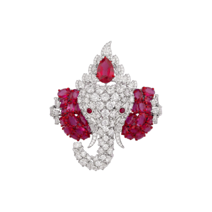 Tradition meets high-fashion. This ruby and diamond Ganesha brooch features a bold, sculptural design that captures the light from every angle. Perfect for elevating a lapel or a sari, it is the ultimate statement piece for the discerning collector.