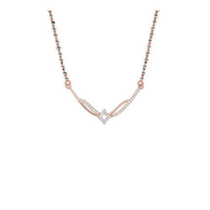 A beautiful union of tradition and contemporary style. This Mangalsutra features a delicate rose gold and black bead chain, leading to a stunning V-shaped pendant.