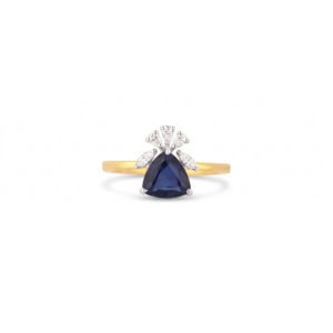 A brilliant blue center stone set within a sparkling star-shaped diamond frame.