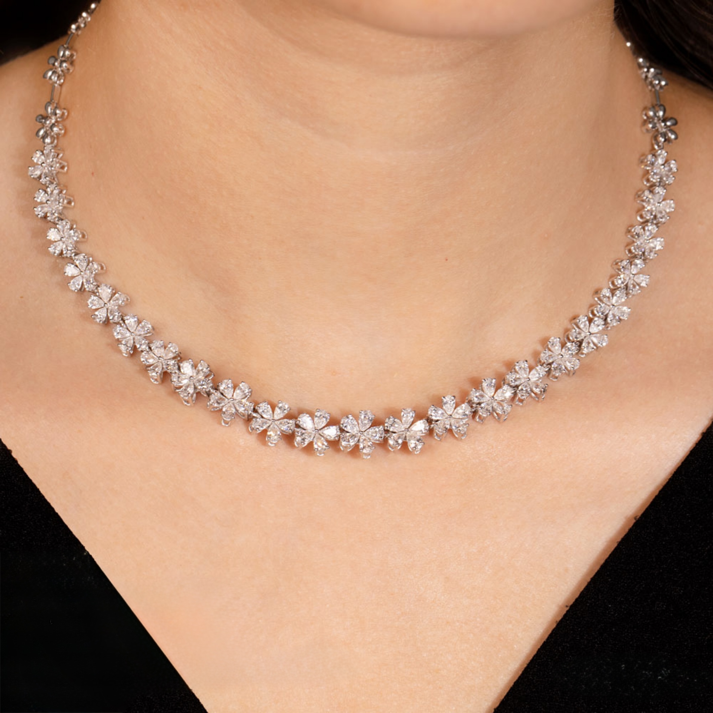 Diamond Floral Tennis Necklace